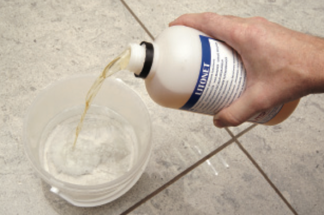 LITONET в концентрированном виде или разведённый с водой в пропор- ции от 1:1 до 1:10 удаляет с плиточ- ной облицовки свежие остатки эпок- сидных составов EPOXYSTUK X90, LITOCHROM STARLIKE DEFENDER и LITOCHROM STARLIKE в течение первых 12-24 часов после окончания затирочных работ.