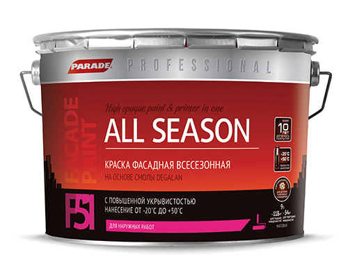 Краска фасадная PARADE F51 ALL SEASON база C 9л