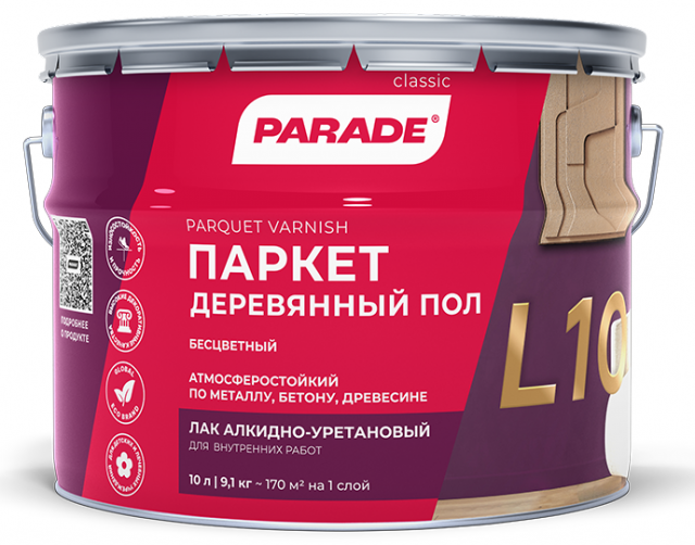 Лак Parade L10 Паркет &Деревянный пол алкидно-уретановый полуматовый 0,75л