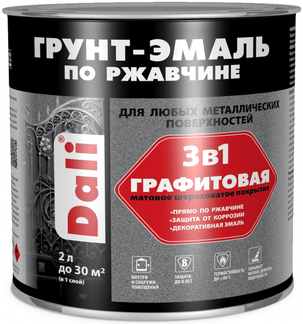 Грунт-эмаль Dali по ржавчине 3в1 графитовая серый 2л