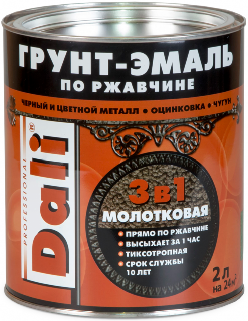 Грунт-эмаль по ржавчине 3в1 Dali молотковая коричневая 2л