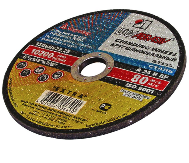 Изготовлен из электрокорунда высокой степени очистки, армирован стекловолокном на бакелитовой связке средней твердости, благодаря чему имеет высокую производительность, твердость, упругость и стойкость к износу.