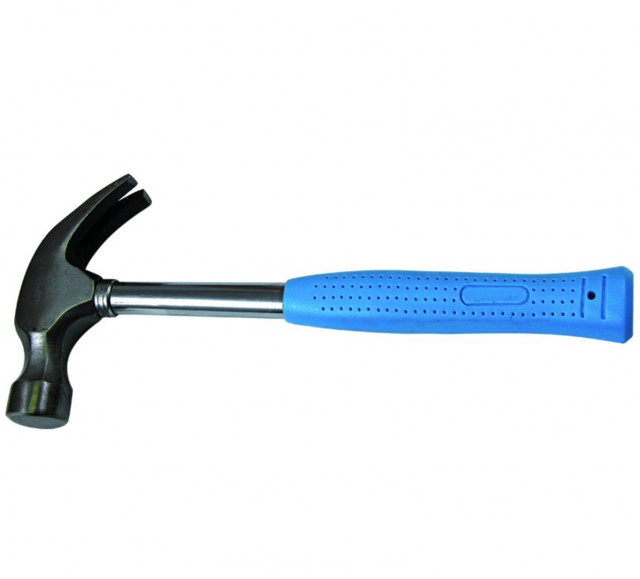 Молоток-гвоздодер кованый, цельнометаллический, 600г, обрезиненная ручка T4P