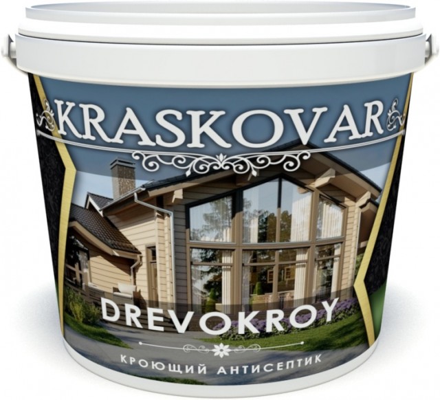 Кроющий антисептик Kraskovar Drevokroy создает на поверхности деревянных изделий гидрофобный защитный слой, за счет использования в составе добавок из воска. Оберегает дерево от процессов гниения, воздействия химически- агрессивных веществ и паразитов. Имеет высокую степень проницаемости, гидрофобен, стоек к воздействию неблагоприятных атмосферных факторов, износу, грибковому и плесневому поражению. Используется для изделий из дерева (досок для обшивки, панелей для стен, фасадов из дерева, ограждений, плинтусов, древесно-волоконных плит, древесно-стружечных плит, фанеры, ОSB, шпона, оконных рам, заборов и пр.). Рекомендуется для обработки новых, ранее неокрашенные изделия из дерева, либо уже окрашенных защитными материалами (алкидными, акриловыми, масляными). Для внутренних и наружных работ. Превосходно передает фактуру дерева. Не применять для пола.