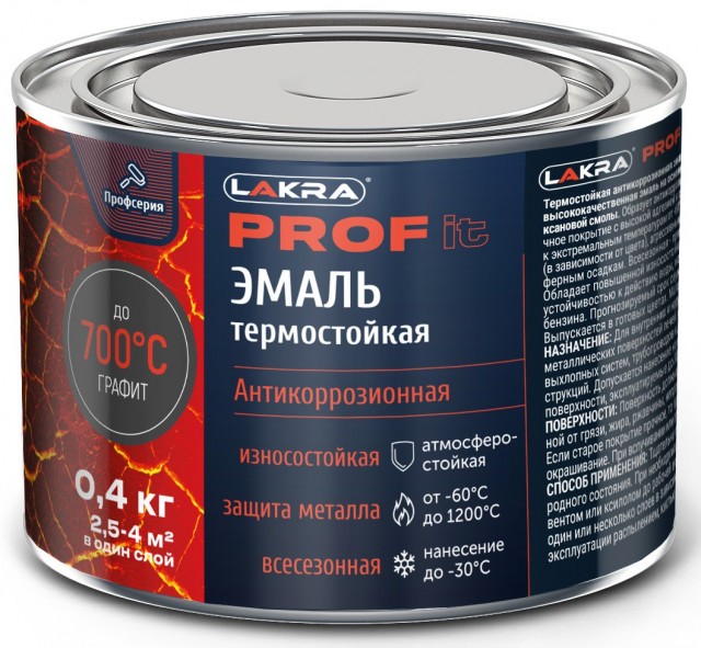 Эмаль Лакра PROF IT термостойкая антикоррозионная до 700С графит 0,4кг