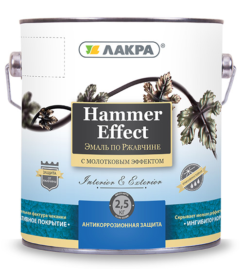 Высококачественная эмаль на основе алкид-стирольной смолы, сочетает в себе свойства антикоррозионного грунта и декоративной эмали. Применяется для защиты и окраски как чистых, так и ржавых или частично прокорродированных металлических поверхностей с толщиной плотнодержащейся ржавчины до 0,1 мм, а также деревянных поверхностей для создания "молоткового" эффекта. После высыхания образует глянцевое покрытие с характерным рисунком чеканки (молотковый эффект), скрывающее мелкие дефекты поверхности.