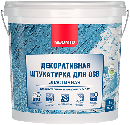 ! Необходимо принять во внимание, что смолы, содержащиеся в клеевом составе некоторых типов (марок) ОSВ-плит различных производителей, под воздействием атмосферных осадков и УФ-лучей могут вызвать появления пятен на окрашенной поверхности. Во избежание их появления, рекомендуется предварительно обработать поверхность Грунтом для плит OSB изолирующим полиуретановым NEOMID.