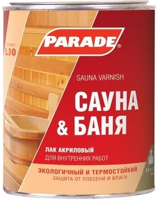 Лак Parade L30 Сауна &Баня акриловый для саун полуматовый 0,9л