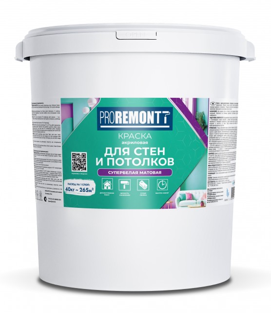 Краска доступна в цвете белый, имеет матовый блеск. Область применения - для внутренних работ.