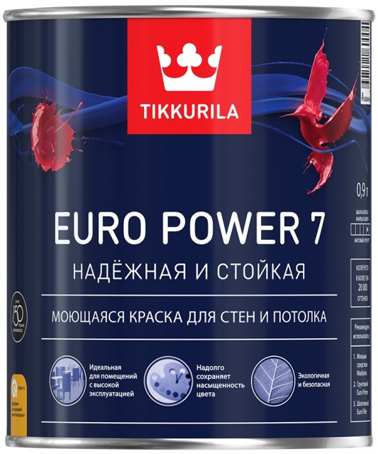 Краска TIKKURILA EURO POWER-7 латексная для внутренних работ база С 0,9л