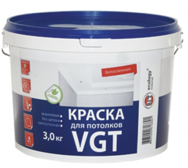 Краска VGT ВД-АК-2180 ДЛЯ ПОТОЛКОВ акриловая белоснежная матовая 7кг